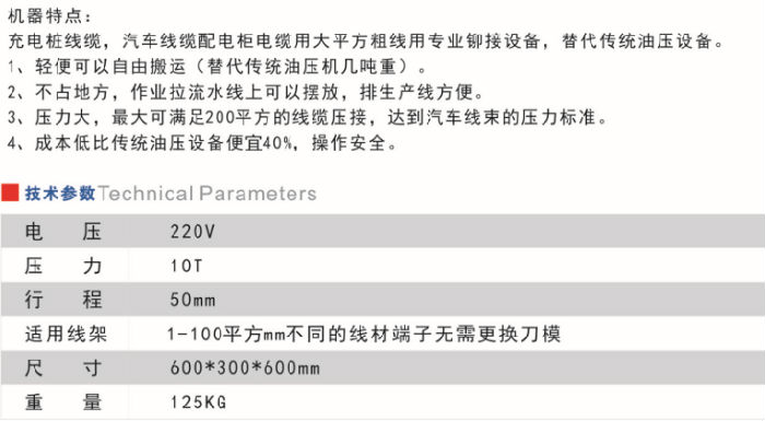 新能源10噸液壓端子機 不同線材端子不需要更換刀模